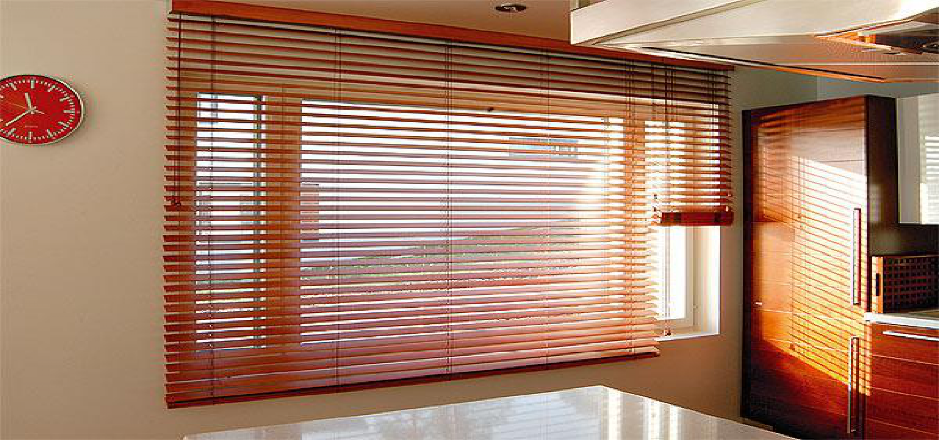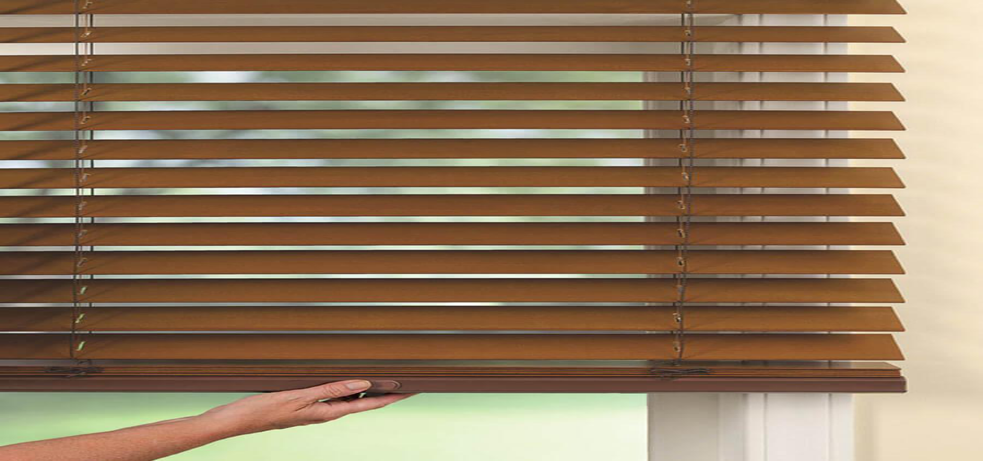 The natural Beauty that a wooden blinds bring to a room creates a classic style guaranteed to stand the test of time. Wooden blinds feature a number of horizontal slats that are linked together by a cord pulley system. This design of blind is also known as Venetian. When fully raised, the slats gather together at the top of the window, revealing the full view outside. Wooden blinds bring a softer, more organic feel to windows than venetian blinds, Wooden blinds are better for large windows because they are lighter in weight than faux wood.